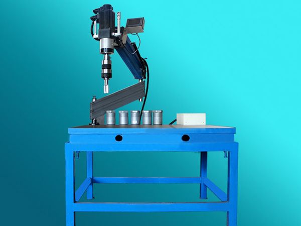 攻絲機八大優勢 1 :主軸頭可實現自由校正垂直度。 2 :微電腦控制自動定深、通孔盲孔任意設置深度,到達設置深度自動退出。3 :自帶夾頭扭力過載保護系統、自帶電流控制器自動調節攻